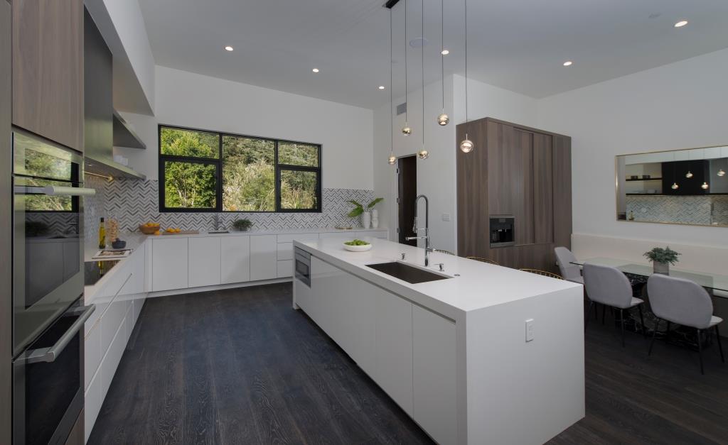 Sleek, new, and private, this striking contemporary home is made for stylish entertaining.