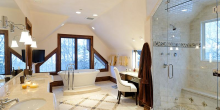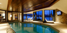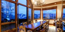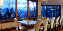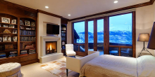 The beautiful grounds include a tennis court, an indoor swimming pool with views of the mountains, a jacuzzi, a weight room, a theater, a wine cellar, and 2,300-square-feet of decks and patios. The mansion itself is both sophisticated and welcoming; the perfect place to warm up after a day on the mountain. The open living area and bar feature vaulted ceilings, leading towards a custom dining room with unobstructed views, a newly remodeled kitchen, custom breakfast table and sitting area. Upstairs the master bedroom features his and her closets, while downstairs there is a gym and nanny’s quarters.