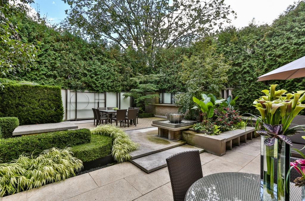 Enclosed private gardens exceptionally landscaped and complimented by a stunning fountain create a magical paradise in the heart of the city.