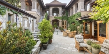 The typical day might begin with breakfast on the terrace followed by a hike on one of the estate’s many trails. Upon return, enjoy lunch in the pool house, take a dip in the pool, or exercise in the gym. Late afternoon could involve a glass of wine on one of the many patios. Dinner is served in the intimate dining room, followed by the screening of a film in the home theater. Later, while nestled in the inner courtyard, observe the twinkling lights in the night sky.