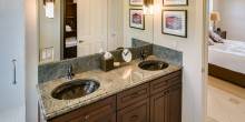 As you pass through three levels of entertaining patios detailed with party lights and an ornate fountain, down stone stairs, you find yourself at the pool and a luxurious one-bedroom, one-bath cabana guest house. There is a charming kitchenette with breakfast bar, a wood-burning fireplace, cushioned window seats, and French doors that provide views and access to covered lounging areas and the heated pool with spa. The cabana and the pool patio share a seamless transition from indoor to outdoor with hand-crafted cement floors. The European-style pool with lion spouts and covered terrace complement the main residence in its exquisite grandeur.