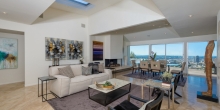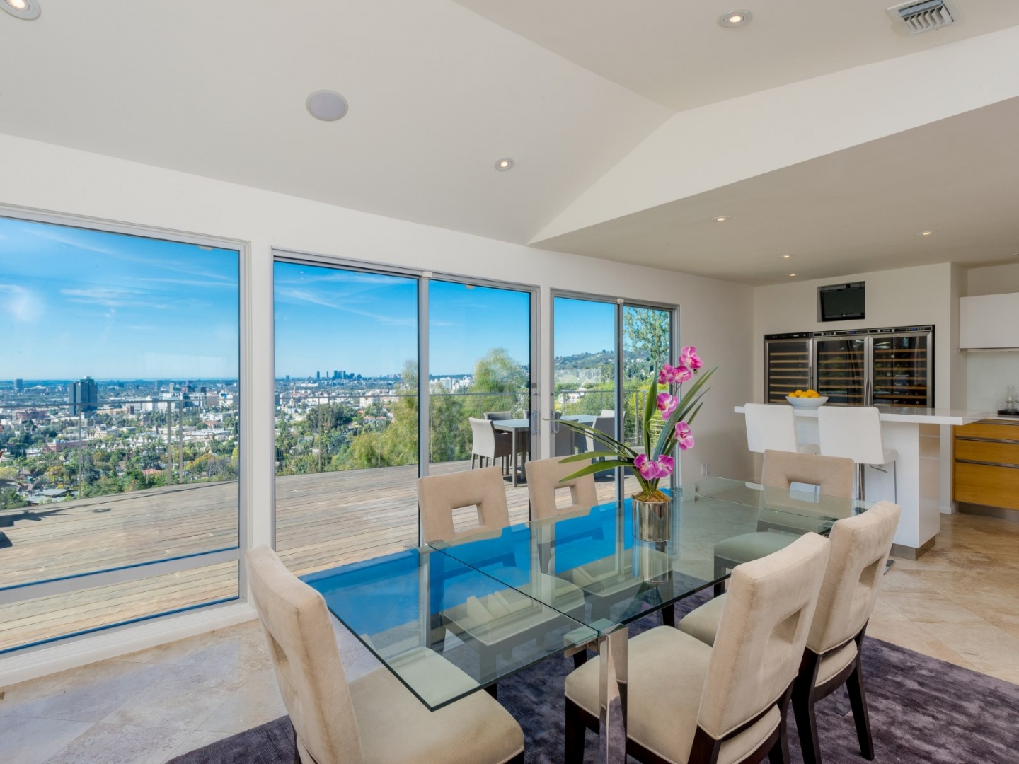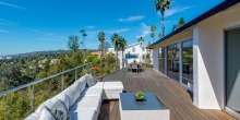 A masterpiece of contemporary Californian design, this exceptional Hollywood Hills retreat has the combination of features that have become so hard to find: pool, view, and privacy all on one level of a single-story modern home. Set against an incredible city skyline with views stretching to the ocean, this dramatic, approximately 3,000-square-foot home is at the end of a cul-de-sac in The Oaks, gated and set back from the street for maximum privacy. A high-end remodel features a gourmet chef’s kitchen with Miele and Sub-Zero appliances, an enormous open dining and living area with high ceilings and skylights, and nearly 1,500 square feet of deck space to enjoy the jaw dropping views. A private, solar-heated pool is surrounded by grassy yard and lush landscaping. Luxurious master suite complete with office, walk-in closet, and en-suite bath. Two more double bedrooms have en-suites and built-in closets, and a generous fourth bedroom could also be used as a den. A true hideaway in a spectacular Hollywood Hills location.