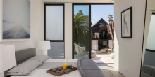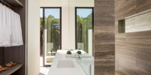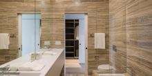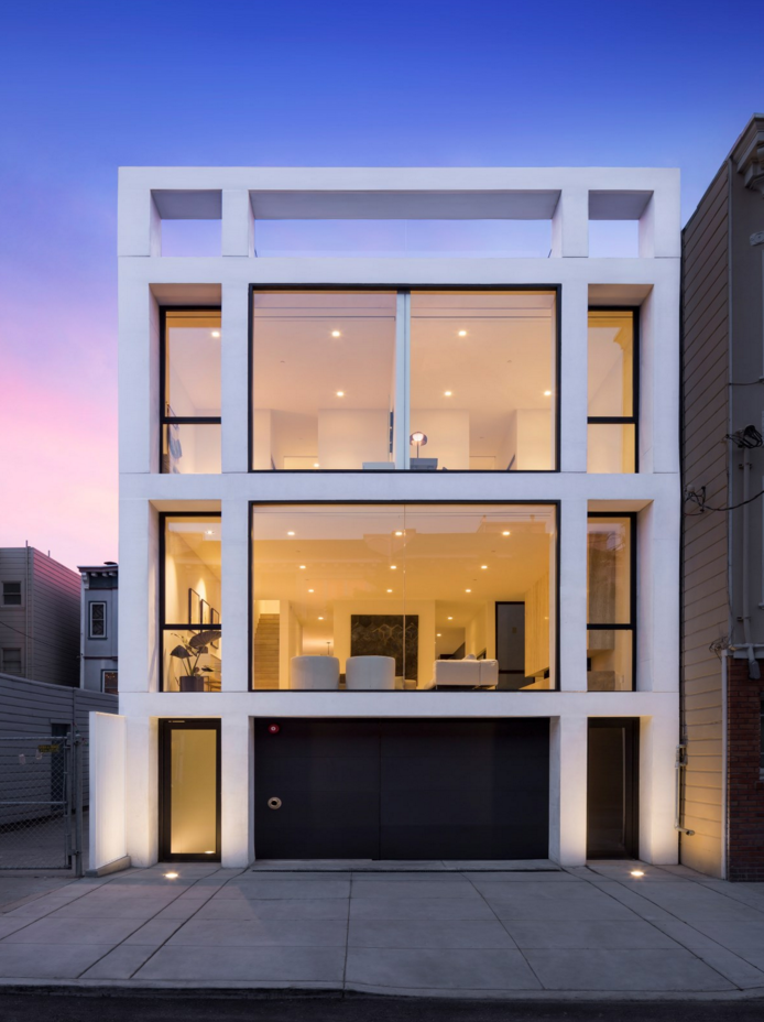 Tucked away on a serene block in the heart of Mission Dolores, 50 Oakwood is an oasis in the heart of the city. Designed by renowned architect Stanley Saitowitz of Natoma Architects, 50 Oakwood is an exceptional blend of modernity and classicism. Four levels flow seamlessly into each other, helped by floor-to-ceiling walls of glass, as well as abundant natural stone. A custom-cut, 16-foot-long Italian Santa Catarina travertine fireplace highlights the main living room, which shares the second level with the grand kitchen. Custom grey oak Boffi cabinetry with hidden wall systems and a 15-foot-long Boffi island with custom quartz countertop and integrated sink centers the room and provides just one of several dining options. The master suite, with its secluded terrace, travertine spa bath and shower, and fully outfitted dual custom Porro wardrobes is joined on the third floor by two spacious bedrooms with their own travertine bathroom and a light-filled office. A self-contained in-law/au pair apartment on the lower level has its own entrance, kitchen, and laundry, as well as a sunken patio leading up to the backyard. There are expansive stepped terraces on all levels, including on the top-floor pentroom, where front and back rooftop terraces are accessed through disappearing glass doors that give way to glorious views from downtown to the hills. No expense has been spared in this residence, where the finest finishes and every amenity rule. A home-automation system, powered by Savant, controls aspects of the home from wall-mounted iPads or directly from your phone, from anywhere you may be in the world. 50 Oakwood sits in an easily accessible and exciting part of San Francisco, next to Dolores Park and some of the city’s best restaurants. But behind the concrete, glass, and steel frame is a study in classic natural materials that create living spaces so lovely, so clean, so full of light and air, that once you enter, you may never want to leave.