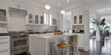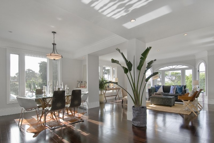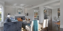 This stunning two-story, top-floor unit in a classic Marina-style building is beautifully remodeled down to the studs. The home opens into a large, light-flooded living room with a cozy fireplace, custom moulding, and engineered hardwood floors. The open kitchen includes new cabinetry, high-end appliances, honed, black granite, and Carrera marble counter-tops and a large pantry for easy organization and storage. The entire top floor is the master suite, a dressing area, and an en-suite bath finished with marble and tile. A peaceful and private deck at the rear of the home includes a staircase that leads to the shared yard. New systems throughout, CAT-5 wiring. One-car parking in the attached garage. 1/2 block to Google bus stop and a Walk Score of 96. This two-unit building qualifies for fast track to condo conversion.