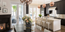 This extraordinarily unique Victorian was completely rebuilt retaining the period influences infused with contemporary stylish updates throughout. A formal entry introduces the tasteful blend of both tradition and chic modernity experienced throughout. Graciously scaled rooms are featured on the main level, which includes a generous living room with fireplace, an adjacent family room with a dramatic wood accent wall framing the passage to the combined dining room, and kitchen. Coved ceilings, magnificent molding, spectacular rosettes showcasing exquisite contemporary lighting, and distinctive wall coverings enliven the interior.