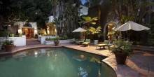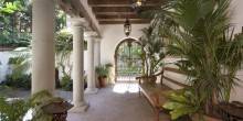 Set in the heart of the Serra Retreat, this Spanish Colonial with a rich Moorish influence offers five bedrooms, six baths, and a separate guest suite with a private entrance. Finished in the finest materials available, there are stone floors, limestone countertops, custom tiles and cabinetries, and distressed beamed accents throughout. Many of the finishes that are incorporated into elements of the home were imported from Mexico. The entry hall with cathedral ceilings opens to a magnificent living room. Beautifully-detailed arched doorways lead from the living room to a pool area and expansive lawns, which are surrounded by king palm trees and ferns. An entertainer’s dream, the home is set in a perfectly groomed tropical setting. This is truly one of California’s exceptional properties.