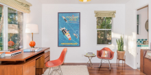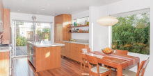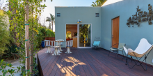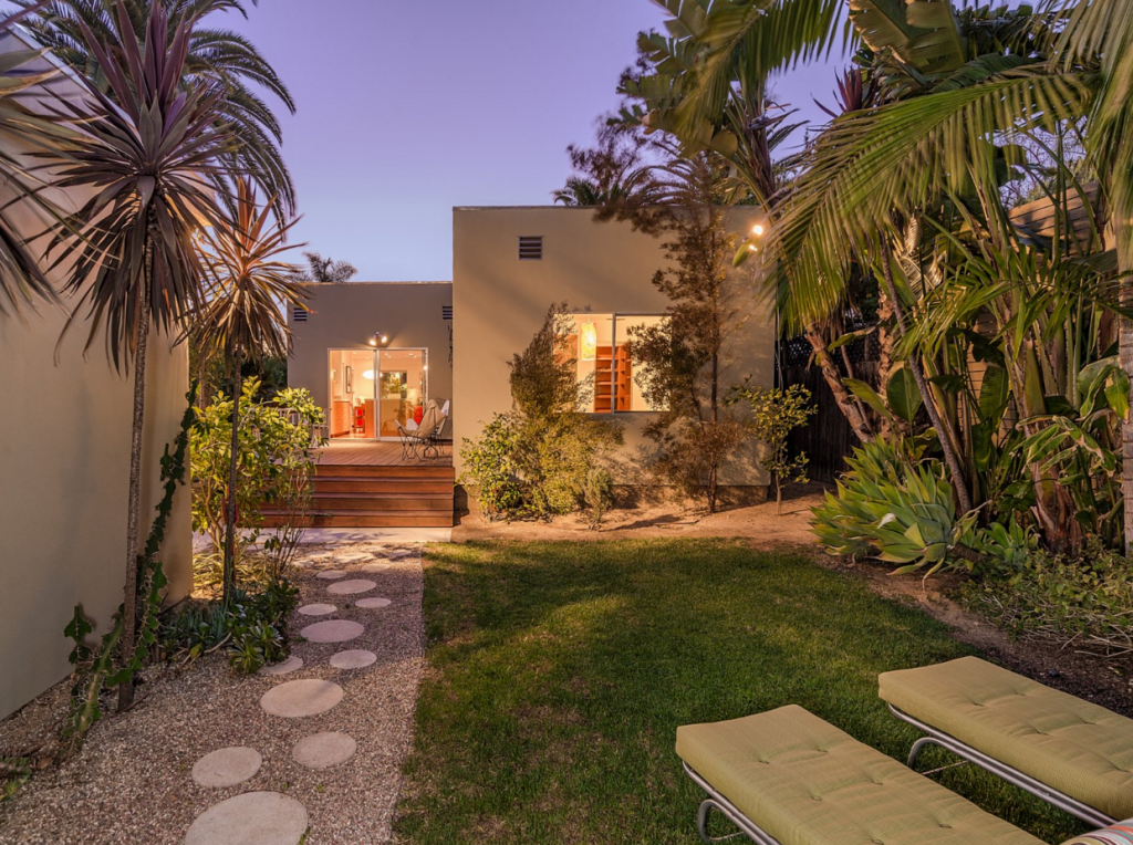 Noted designers ModOp Design transformed a Melrose Village bungalow into this stunning modern estate. This house, which was featured as a former Los Angeles Times “Home of the Times,” is situated on a large 6,500-square-foot lot, which presents an opportunity for development. The very best of California living, this home is move-in ready with an open floor plan. The light and bright living room features an original Batchelder-tile fireplace and leads to the dining room and a kitchen with custom teak cabinets, hardwood flooring, and high-end appliances and fixtures. The front bedroom consists of its own bathroom and a large closet, while the master suite has an enormous en suite bathroom and a walk-in closet. A steel slider door opens to a private deck and the backyard, which is complete with lush and mature landscaping and palm trees. The jumbo, detached garage with high ceilings is perfect for a home office or a studio. Additional features include gated driveway, custom blinds, built-in speakers, and central HVAC with Nest. This rare opportunity that won’t last long is walking distance to restaurants, nightlife, and shopping in one of Los Angeles’ hottest neighborhoods. Robert Kallick and Matthew Morgus are the listing agents for this property.