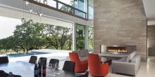 Virtually every room enjoys sweeping vistas through floor-to-ceiling glass walls with Fleetwood pocket doors with Brio screens. Bedrooms feature automatic integrated shades, and like the baths, have operable skylights. Effortless indoor/outdoor living is embraced when the glass doors are open to the expansive terrace and views, with St. Tropez limestone, radiant-heated floors blending the two areas. An infinity edge saltwater pool, bocce ball court, fire pit and fully-appointed, outdoor kitchen with lounging area and television create an extraordinary entertaining venue.