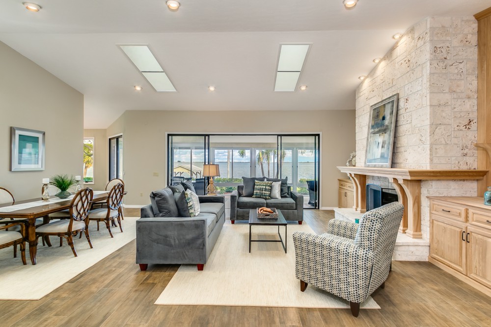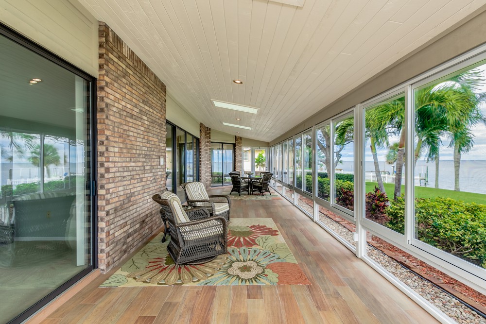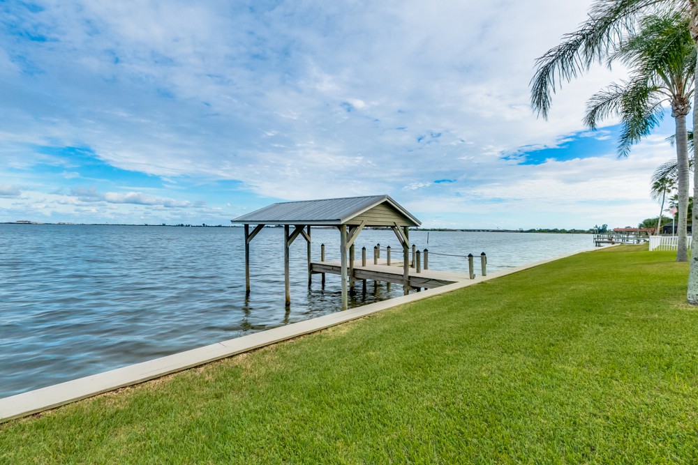 Impeccable deepwater riverfront home on South Tropical Trail. Pride of ownership emanates from this stunning one owner home. Captivating views of the river from nearly every room and soaring 12 ft. ceilings throughout this timeless open floor plan. The spectacular white coral wood burning fireplace with custom cypress wood mantle and cabinets in the great room makes it perfect for entertaining on chilly evenings, particularly with the wet bar just off the room. The kitchen will delight the most discerning chef with its granite counters, wine refrigerator, induction cooktop and many new appliances. The master suite with stunning river views has 2 walk-in closets and an impressive master bath. Enclosed sunroom with an incomparable backdrop of the Banana River has a 2 ton mini split air conditioner for indoor/outdoor living. There is also mature landscaping, a dock with utilities and a boat house with plenty of room for a pool if you so desire. New 5 ton Trane A/C with 10 year warranty.  Everything about this home says perfectly maintained & comfortable luxury.
