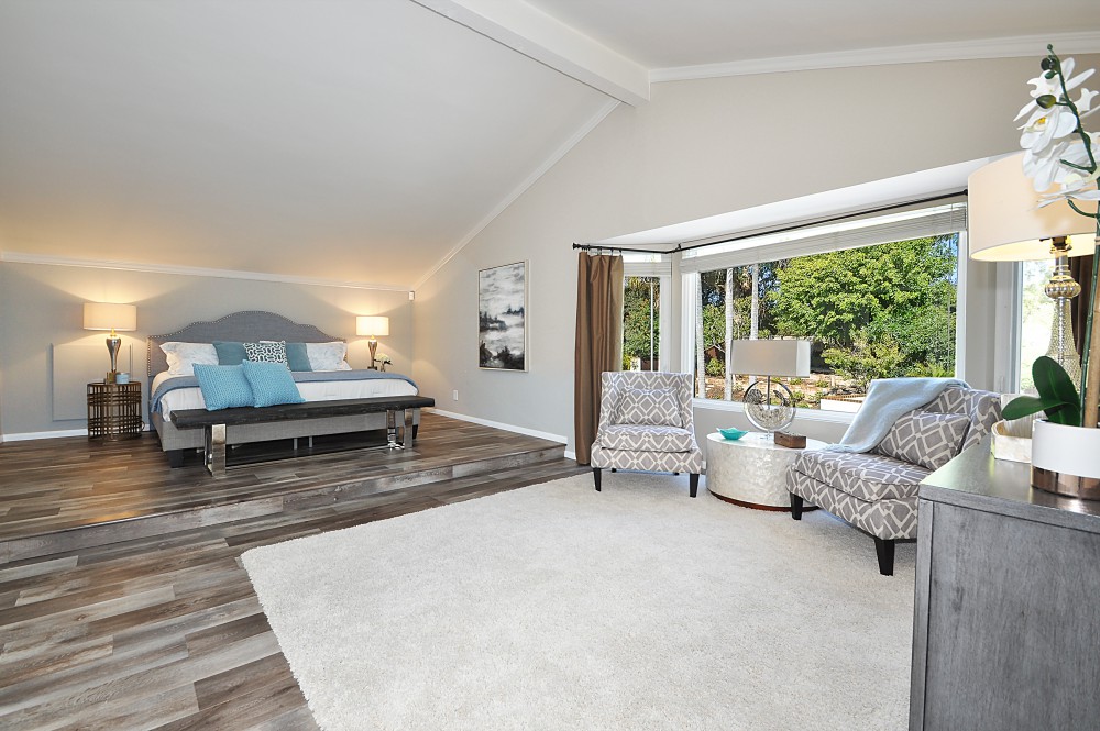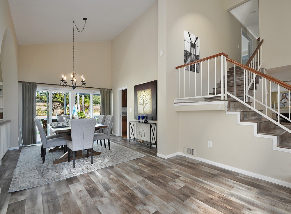 Enter a spacious private courtyard into this gorgeous 5 bedroom and 3 bath updated home with one bed and bath on the main level. The living room has soaring cathedral ceilings and features a conversation pit with fireplace, large formal dining area that is next to the great room, which has a kitchen with granite counters, abundance of cabinets, a nook, and family room that looks over the fantastic backyard. Upstairs are 4 more bedrooms (one an office). Two of the bedrooms offer a view of the ocean from the balconies. The master suite has a full bath and huge closet. The most wonderful feature is the resort like backyard: it backs up to the 6th green of Los Verdes Golf Course; has a concrete paddle tennis/sports court; executive size (deeper) swimming pool, jacuzzi and BBQ island. You will find the surroundings to be so quiet and serene. It has abundant storage spaces, plaster walls, and a 220 volt outlet in the garage for electric cars. Excellent entertaining for both indoor and outdoors. Current owner has a job relocation, just bought few months ago, but has improved/updated with new wooden floor, new backyard fence, sauna unit, partial pool fence, super quiet garage door openers, central heating unit and duct, new water heater, all new toilets and etc.