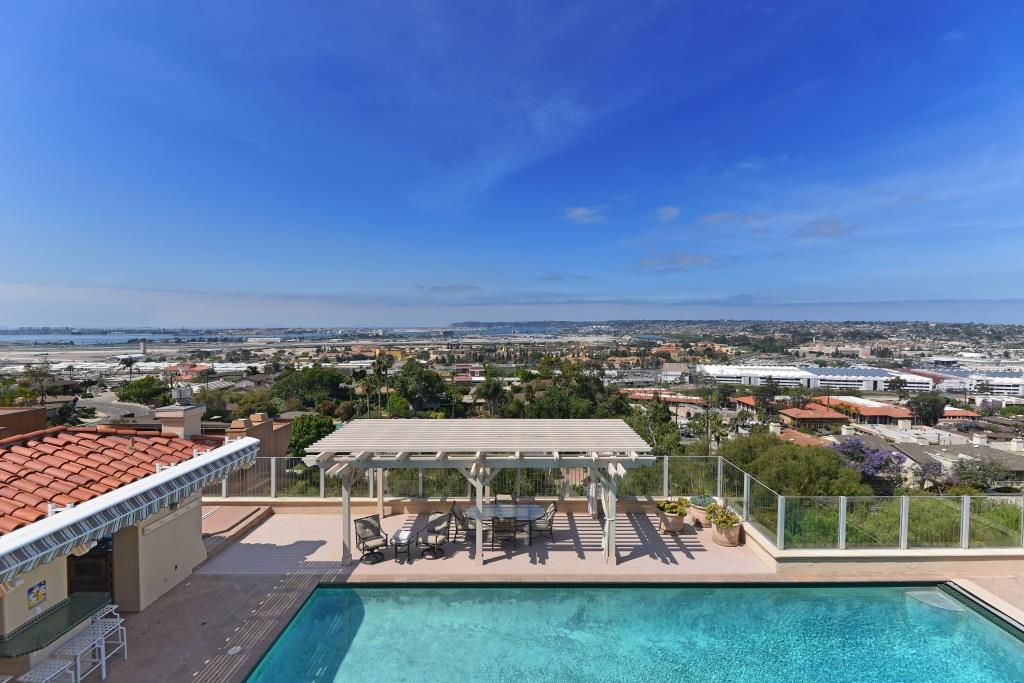 Absolutely awe-inspiring ocean, bay and downtown skyline views are yours to covet from this elegant Spanish estate, walled and gated providing an exceptional level of privacy.