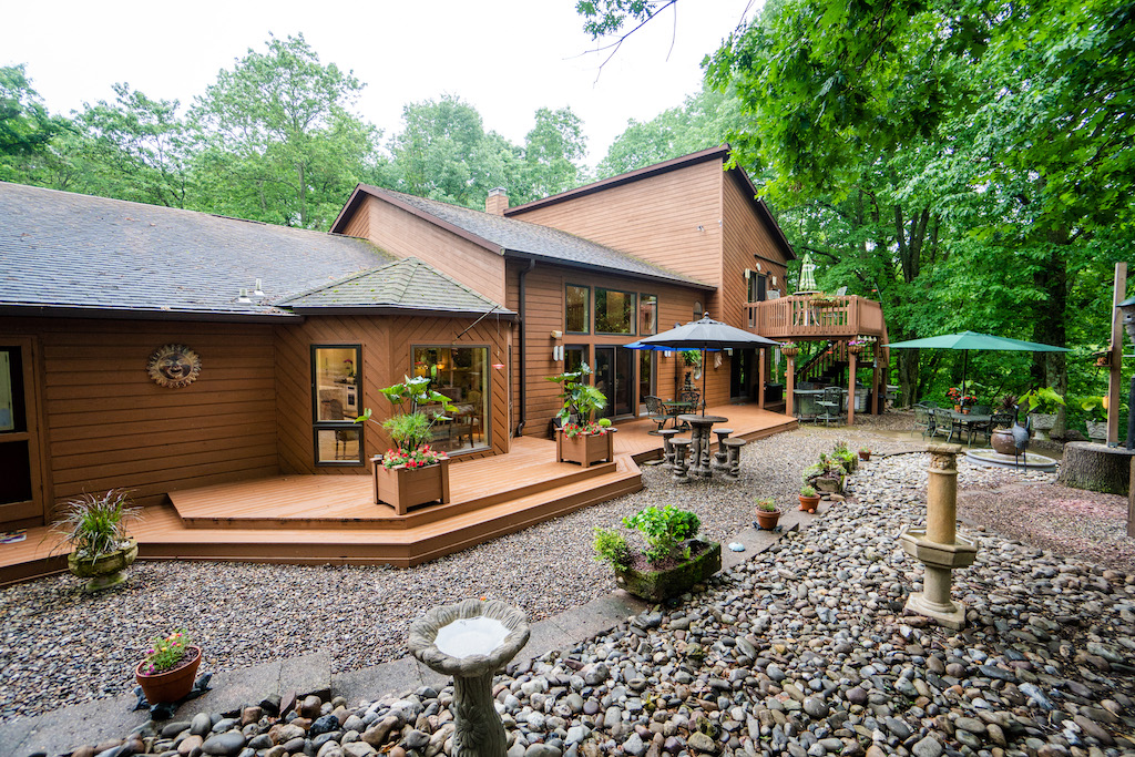 Welcome to this stunning meticulously maintained contemporary home on Manatawny Creek. The pride of ownership is evident with this custom 3800 square-foot full cedar home that offers an open floor plan, great lighting and beautiful views of an outdoor canvas of nature. The journey begins down a meandering driveway along mature trees and a manicured lawn. Enter through a front entry vestibule, under a covered patio. The sunken living room has vaulted ceilings, a gas fireplace with a stucco surround, recessed lighting and an abundance of natural light. The adjacent dining room is spacious and has pocket doors that lead into the custom kitchen. The kitchen is truly a chef’s delight with top of the line leathered granite counters, Wellsford custom cabinetry, a quartzite kitchen island, porcelain flooring, multiple stainless steel sinks, upgraded faucets, and new Kitchen Aid appliances, including dual ovens and a 4-burner induction and 2-burner gas built-in cooktop. The unique skylight over the island is 17 ft. tall. The breakfast area is an extension of the kitchen and has large windows with magnificent views of the rear deck and backyard landscaping. A custom crafted barn door separates this area from a laundry room and full bathroom. An expansive family room saddles the other side of the kitchen and has a built-in wet bar with glass cabinets and French doors that lead to the deck. The pressure-treated, multi-tiered wood deck has a decorative concrete retaining wall surround and an outdoor kitchen, including a built-in gas grill. Back inside, there are two other bedrooms on the first floor and another full bathroom with a granite vanity and built-in soaking tub. There is hardwood and tile flooring throughout. Upstairs, there are beautiful views of below as well as an owner’s bedroom suite that has 9-ft. ceilings, built-in dressers, a kitchenette complete with a sink, cabinets and refrigerator and double French doors that lead to the second level of the deck. The raised owner’s bathroom has a sunken soaking tub, a walk-in closet with custom shelving and cabinets and a walk-in expanded shower stall. Completing this magnificent home is a full partially finished basement that runs the length of the home and has all NEW utility systems including a UV sterilization system, electronic air purifier/ humidifier, water softener, continuous hot water heater, furnace, and AC unit. Truly a vacation retreat right at home, you’ll want to see this one in person.