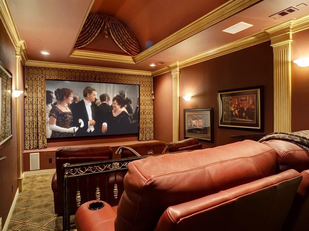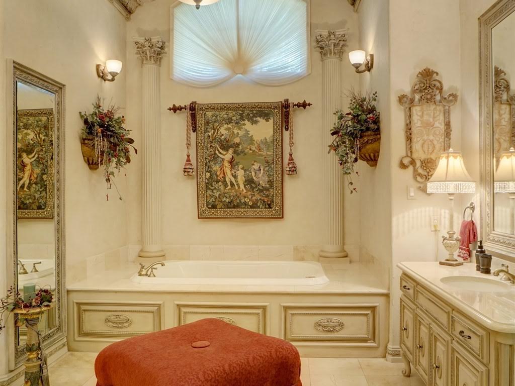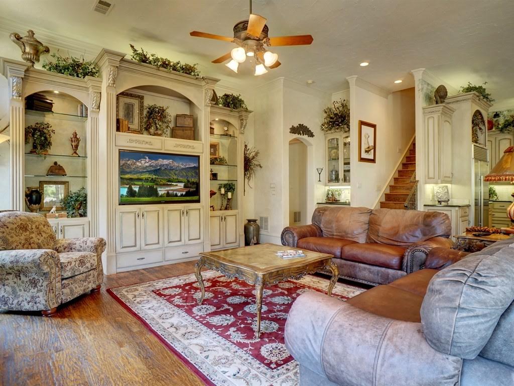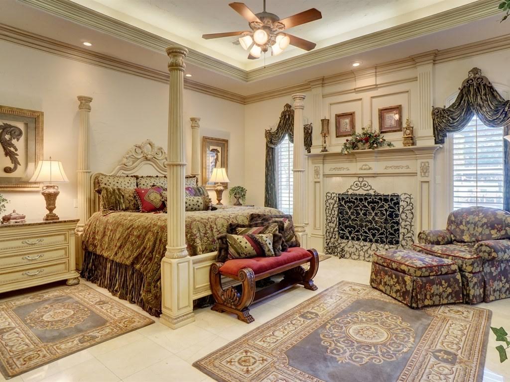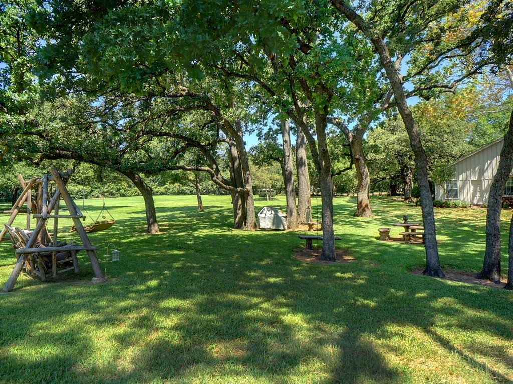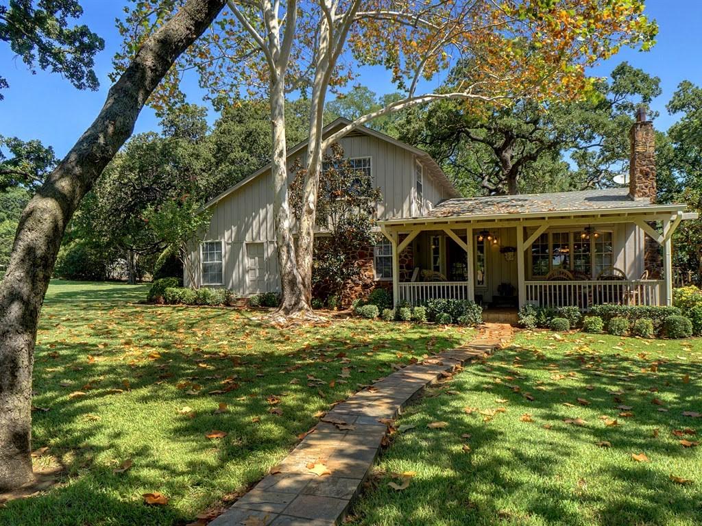 This luxury residence is situated in the middle of four-and-a-half meticulously maintained park-like acres in the heart of Colleyville, Texas. This 6,742 square foot house has four total living areas and a formal living room with a curved wall of windows. Two wells can be found on the property as well as a pond stocked with fish and a cascading fountain. Its sprawling backyard features a diving pool with a rain fountain and an attached spa, an outdoor shower, and a lighted Cabana with a fireplace, grilling station, DCS grill and a U Line fridge. The backyard area has extensive decking with multiple entertainment areas. This property also includes a full Guest Quarters that can be accessed by a quaint bridge and has three bedrooms, two bathrooms, living room, utility, and kitchen. The guest house is 1,701 square feet. The property in total is extremely secure with two gates, an invisible dog fence, and iron fencing throughout. It can accompany seven cars total with extensive parking options and has two car carport-workshop. Arrive in style to the ornate Portico via a long Circle Drive.