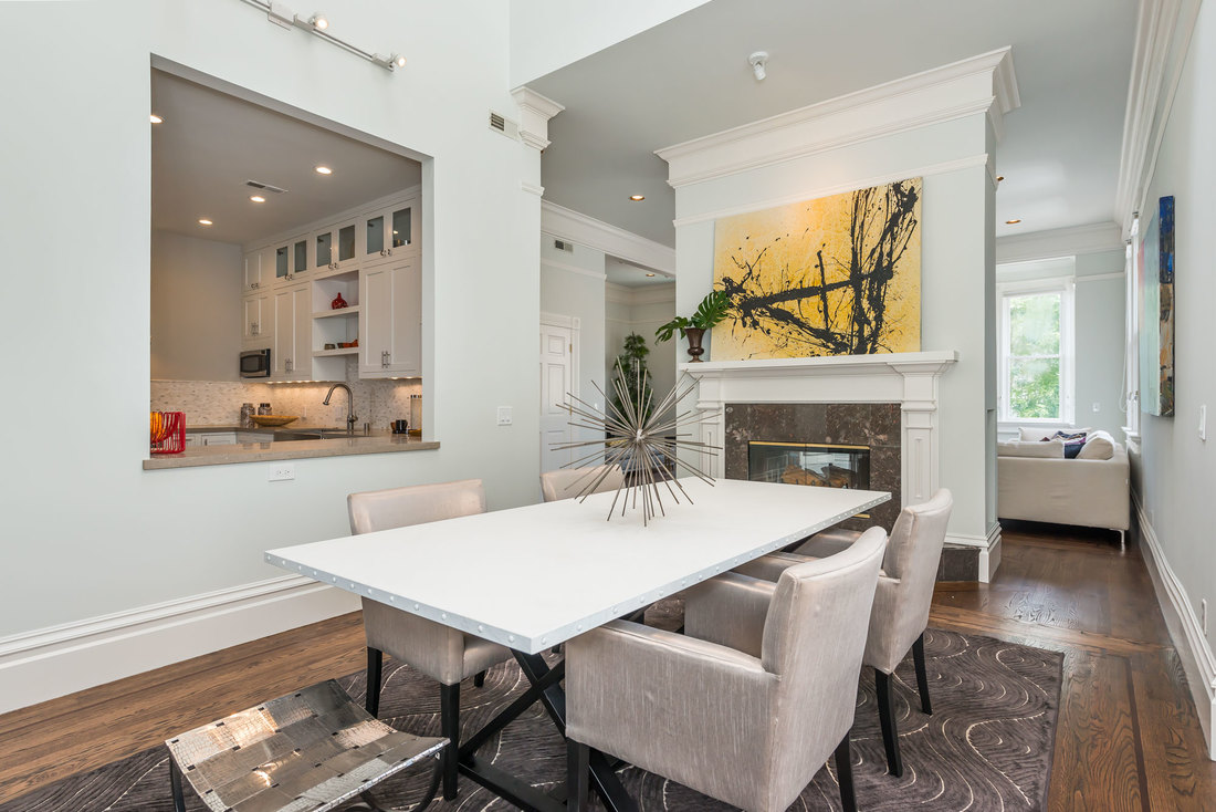 There are soaring ceilings, gorgeous wood floors, skylights, and a room defining see-through wood burning fireplace in each unit.