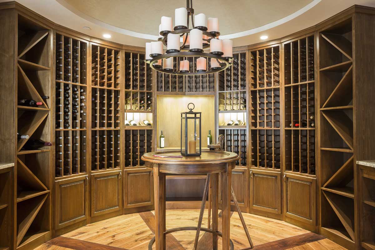 A semicircular bar can be opened by custom-made curved sliding windows and is accessible from the family room or outside on the deck.