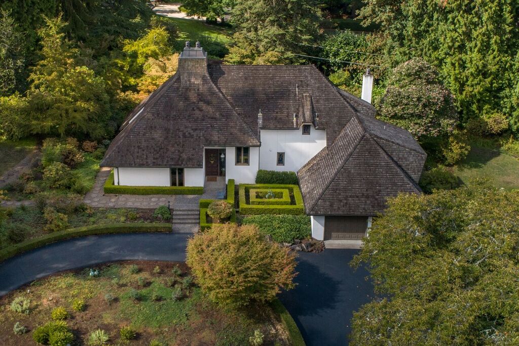 On the market for the first time ever, this impeccably maintained 4,197 sf home features tiled floors, paneled walls, tongue-and-groove ceilings, rough-hewn beams, and glass expanses—with stained-glass detailing—creating warm and welcoming spaces. There is extensive craftsmanship and artistry in the use of wood—walnut in the dining room, teak fireplace and built-ins in the living room, cedar in the family room, walnut cabinets in the kitchen, pine in the laundry room, clear fir on the ceilings and fir hardwood floors. The tall, slanting roof lines, unique layout and multiple common areas offer both openness and intimacy. There are four bedrooms and four bathrooms, (including one suite with a kitchenette accessed via separate stairs from the main house), an office and a great room with a bar on the lower level. Tucked away in nature, yet only 10 minutes from downtown Portland, Dunthorpe is an ideal neighborhood for those who like the quiet and privacy of a secluded community close to the comforts and liveliness of a major city— within the highly acclaimed Riverdale School District.