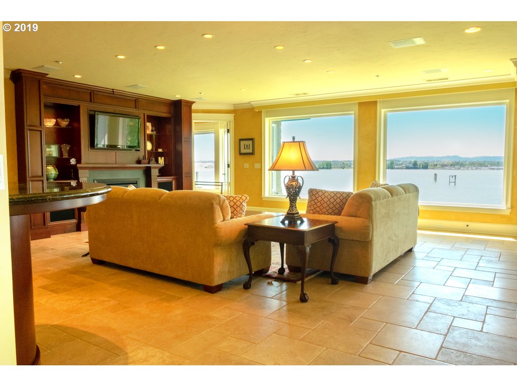 This beautiful third-floor penthouse condo is located in the private-gated, riverside community of Tidewater Cove in Vancouver, Washington. The 4,063 sq. ft. penthouse has exquisite design details, integrated technology, a gourmet kitchen, and a spacious master suite that opens to a terrace with stunning views of the Columbia River and the property’s lush grounds. Each room in the sun-filled, four-bedroom home is elegantly appointed. With details such as beautiful millwork, heated tile floors, floor-to-ceiling windows, two terraces, and a rooftop patio, the penthouse is a true masterpiece in luxurious living. Tidewater Cove is an upscale condominium community situated on the Columbia River, just across the river from Portland, Oregon. The 20-acre, riverside property features three ponds, beautifully-maintained, lush landscaping, walking trails, and a clubhouse with pool, sauna, sport court, and exercise and party facilities. Residents enjoy access to Marine Park, a 53-acre park with scenic trails, picnic areas, playgrounds and a boat launch, which borders Tidewater Cove to the west. The private Tidewater Cove Marina is located just a few hundred feet from the condominium property and is the perfect spot to moor your boat in the summer months.