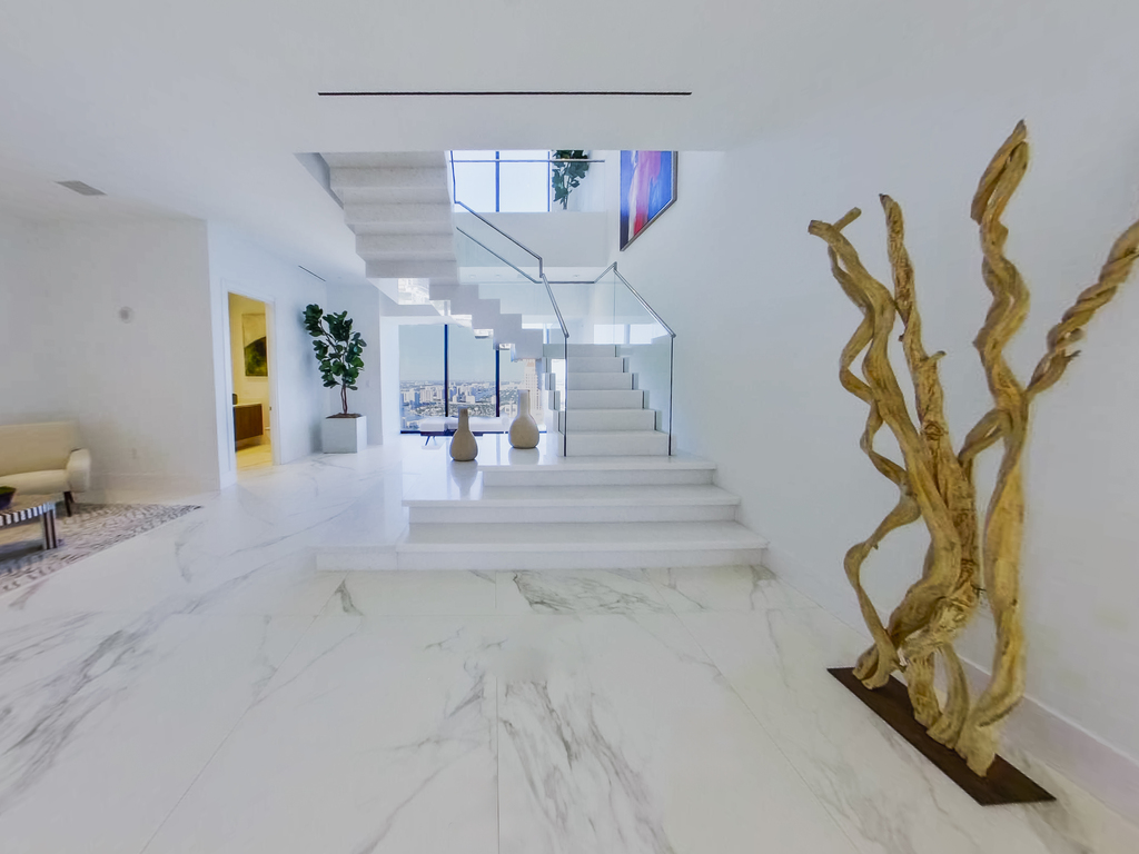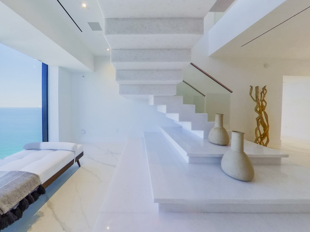 Best unit in the building! Multi-Million-Dollar Oceanfront-Condo is back on the market! Unique two-story MASTERPIECE with phenomenal views; the ONLY combined upper and lower duplex at the exclusive Muse Residence, has a custom-built marble staircase. This exquisite home has the largest interior in the building, boasting 7270 sq. ft.(full area under AC). Two balconies, total sq. ft. 1, 440, both floors are facing EAST and also have breathtaking south, north, and west views. Exceptional for the buyer who dreams of more space; it can be easily converted into 7 bedrooms. Currently has 6 en-suite rooms; includes 1-Master, 1-Jr. Master, 3-Guest Bedrooms, and 1-Small Bonus Den, (also with its own bathroom). Two Outdoor kitchens, custom Italian Cabinets, white Onyx, Italian Porcelain, a $40K TV-Lift, and 6-parking spaces.