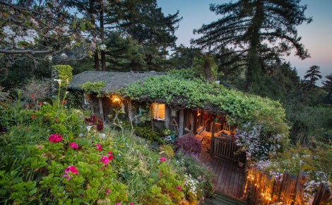 In the exclusive Coastlands subdivision, this 1929 Rustic chic log cabin was built by early Big Sur settler Sam Trotter