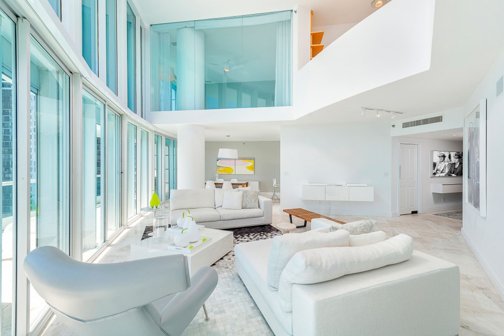 Distinguished full service Ugo Columbo building. Highest floor all waterfront townhome (floors 18/19th ) double height 50 ft wide great