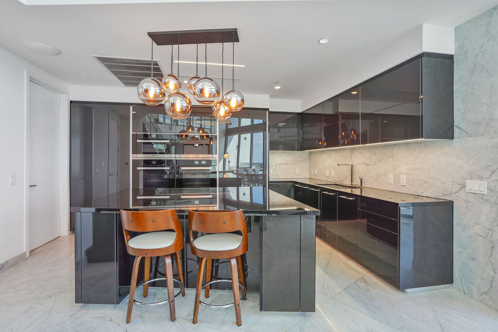 2-Story 4 Bedroom Duplex Porsche Design Tower Poggenpohl-Designed Kitchen with Motorized Doors and an Expansive Island. Listed by Maria Kuzina