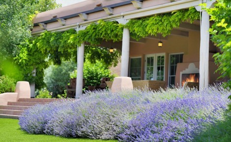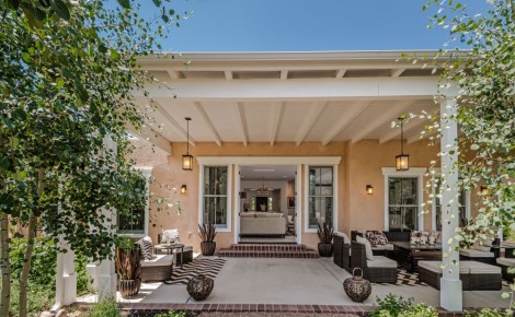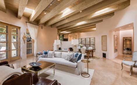Surrounded by courtyards and lush mature landscaping, this elegant residence artfully combines classic Santa Fe design with European architectural influences.