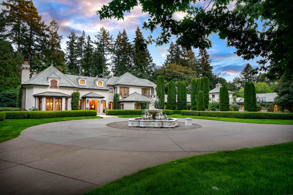 Located in Newberg, Oregon, this 25-acre country estate has two homes, premium equestrian facilities, and a 7-car garage.