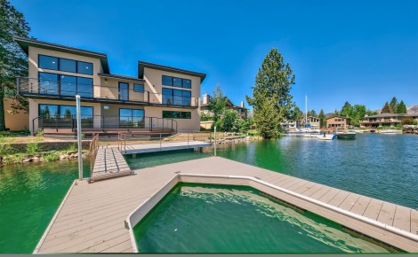 Mountain Contemporary design offering elegant downstairs living lavished with opulent features.Over 100′ of water frontage with sublime wide water views.