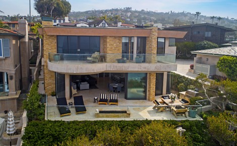 Spectacular oceanfront Laguna Beach home nestled above the bluffs of Wood's Cove features four en-suite bedrooms and a private terrace.