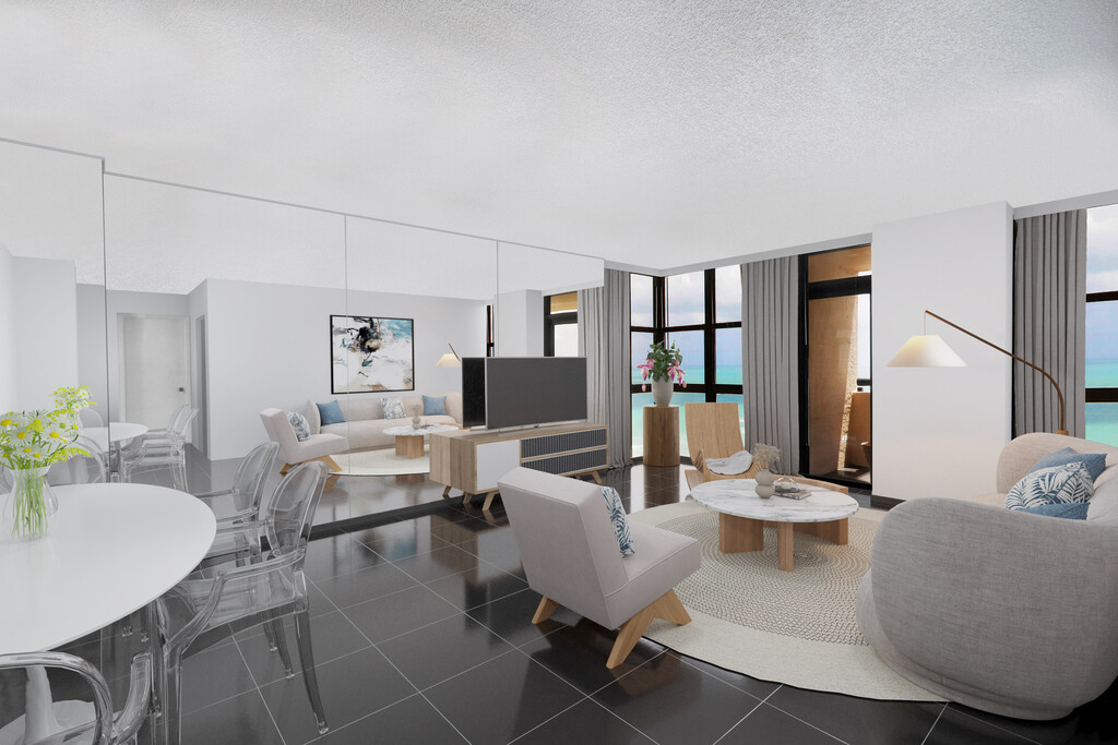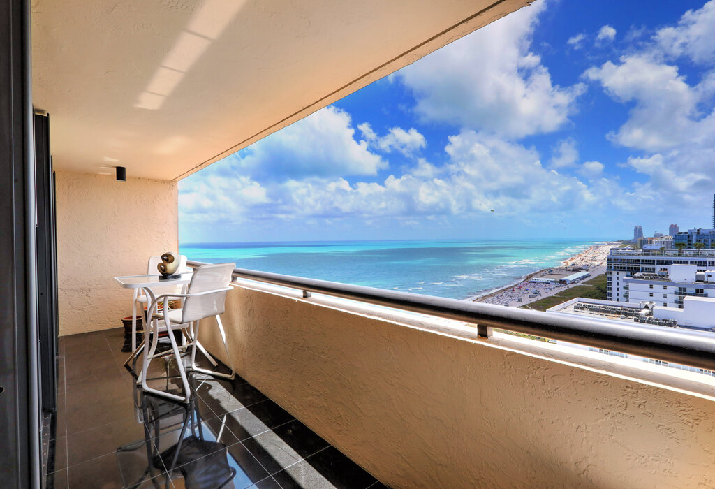 This condo features floor-to-ceiling windows, a large balcony, absolute granite floors, and Jenn-Air floating glass appliances. Listed by Jeanie Vidaurreta