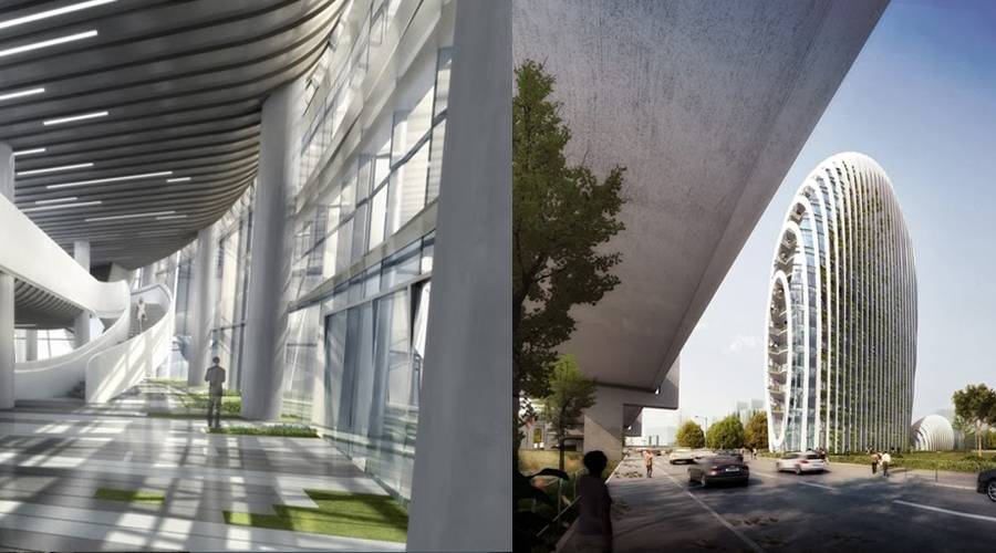 The building will potentially located near the Jilong River, and it boasts a rounded, glass-paneled silhouette and stunning outdoor balconies with incredible city views. Within the building, employees will enjoy communal areas such as coffee shops, kitchens, libraries and conference spaces.