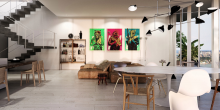 There’s 2,472 square feet of space throughout the first floor’s interior, with an additional 430 square feet of outdoor space that includes a terrace. Also on the first floor is a spacious master bedroom suite, a double-volume foyer, a great room, and an open kitchen. With a 2,130-square-foot roof terrace featuring a spacious roof top terrace, a private pool, a summer kitchen, and a sunning deck, the second floor has almost as much outdoor space as the first floor holds indoor space.
