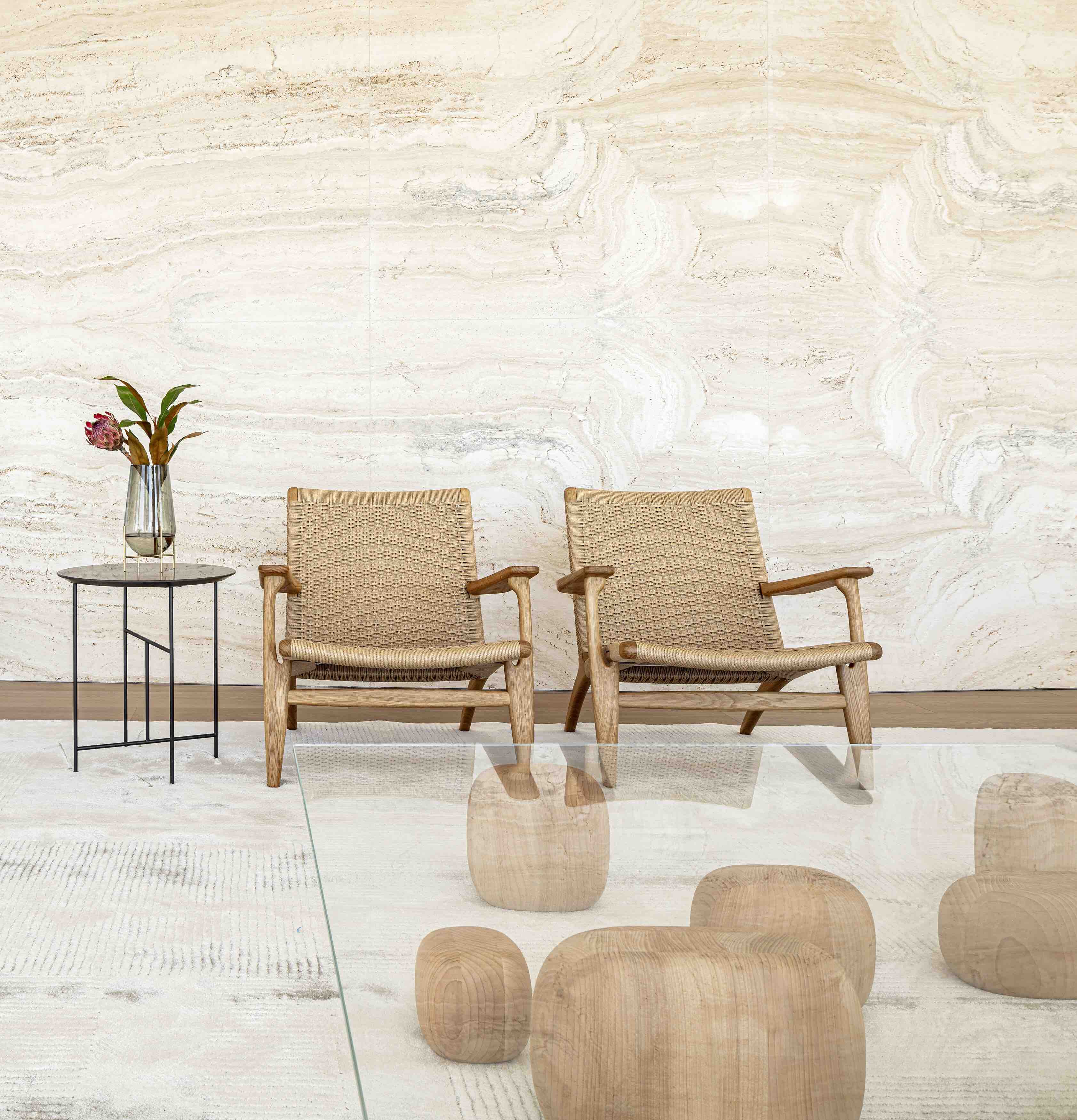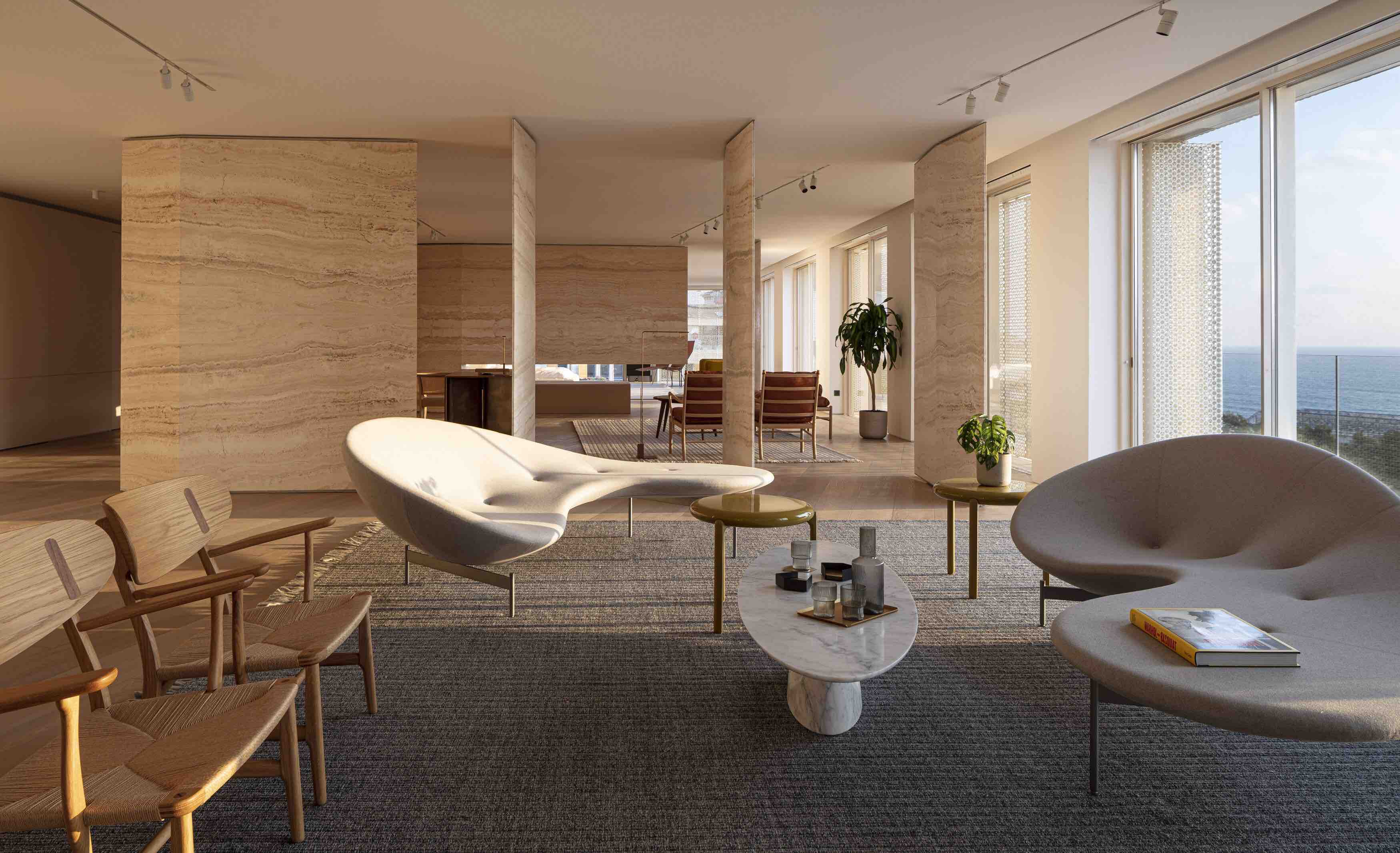 “Bridging the old and the new is further accentuated through the selection of materials and finishes. Inspired by the warmth of Jaffa’s masonry structures, warm Mediterranean stones and marble were selected for the interior, combined with light wood floors to allow the brightness and beauty of the Israeli sun to flood the space graciously.”