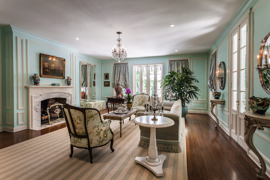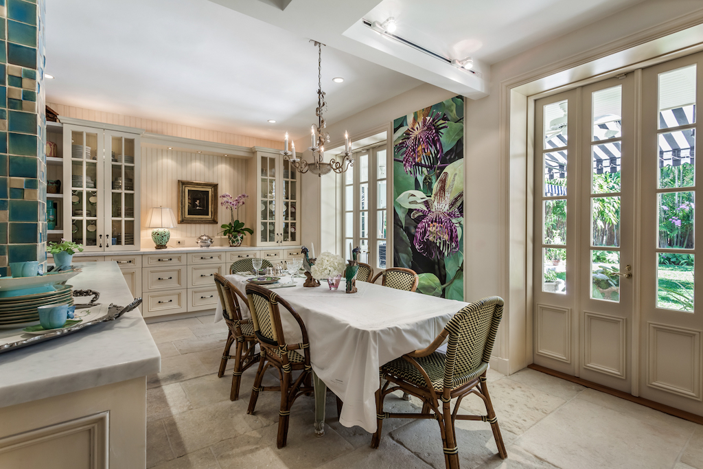 Featuring four bedrooms, four bathrooms and two half-bathrooms, the home was once owned by Florida Governor LeRoy Collins (in office 1955–1961) and Edward and Marie Swenson (founders of the girls school at Ransom Everglades). The residence has also hosted many political figures over the years, including Florida Governor Lawton Chiles (in office 1991-1998) and President George H. W. Bush. Guests are welcomed into the home via a front door entrance, which is hand-cut and set in 125-year-old reclaimed black and white marble from an Andalusian Monastery in Spain.