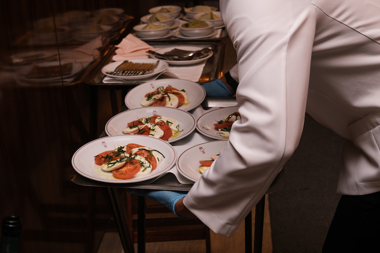 Courses included vine-ripened tomatoes with mozzarella di bufala, olive oil and avocado salad, sliced Parmesan fried calamari with tartar sauce, and lemon baked taglionlini with mushrooms; grilled branzino with peperonata and roasted tomatoes, filet of beef tenderloin with Barolo sauce; and vanilla cream meringue cake and tiramisu for dessert.