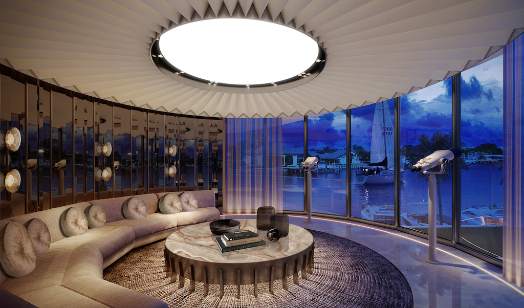 Featuring sumptuous decor bathed in the sea’s soft blue reflections, the lounge is inspired by a classic lighthouse and will be a fitting addition amongst appointments like state-of-the-art technology and best-in-class residential features that define the Palm Beach Gardens Residences. Continuous schemes of light dance through the lounge with every roll of a wave and every glint of the sun, and patrons can get a closer look at these breathtaking sights with the lounge’s two sets of binoculars. The panoramic oasis will offer a getaway for residents to sit back, relax and take in the vibrant world around them from the comfort of a luxurious nook with premium libations.