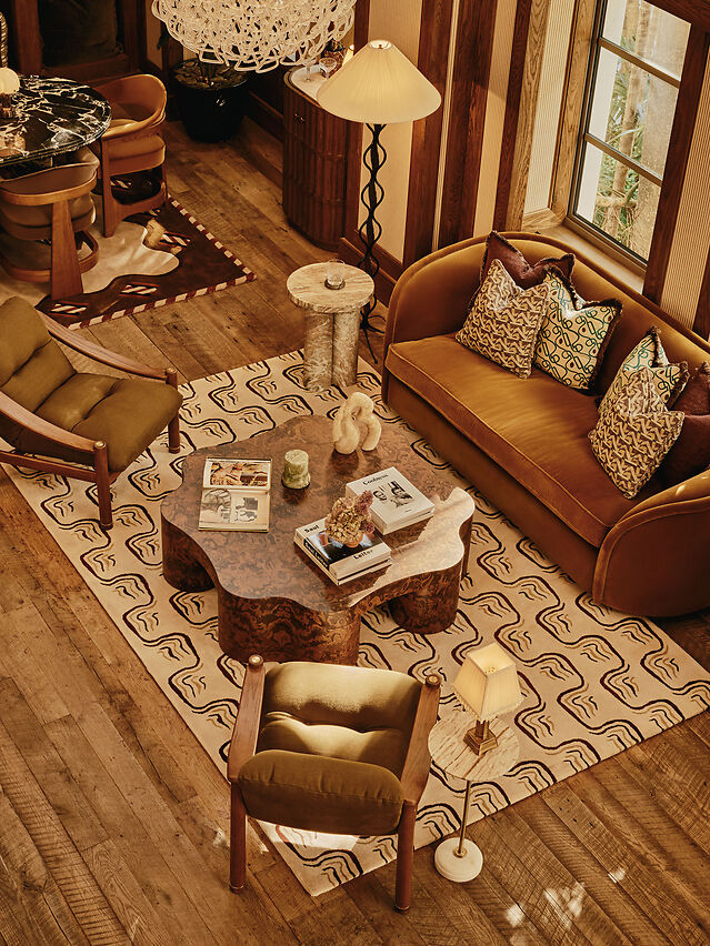 Designed to mirror the layered, collected feel of Soho Houses around the world, the Miami Studio unfolds as a series of living and dining spaces, inviting visitors to the Soho House universe. Vintage Cuban influences nod to the building’s history, while plush upholstery, warm woods, textured textiles, and sculptural lighting capture the unmistakable Soho sensibility.
