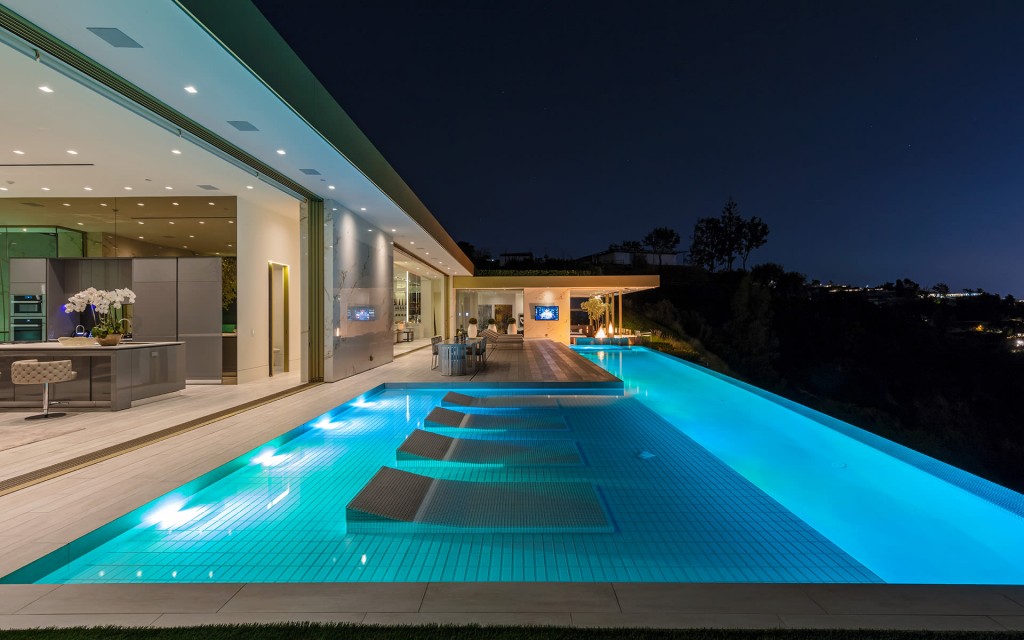 Dubbed The Opus, this masterpiece was designed by world-renowned architect, Paul McClean, and easily retains its legendary status on Billionaire’s Row. This outdoor-indoor oasis is over one acre with jaw-dropping views. It is located on Hillcrest Rd – the exquisite street-with-a-view that undoubtedly boasts Beverly Hills 90210 swagger at its very best.