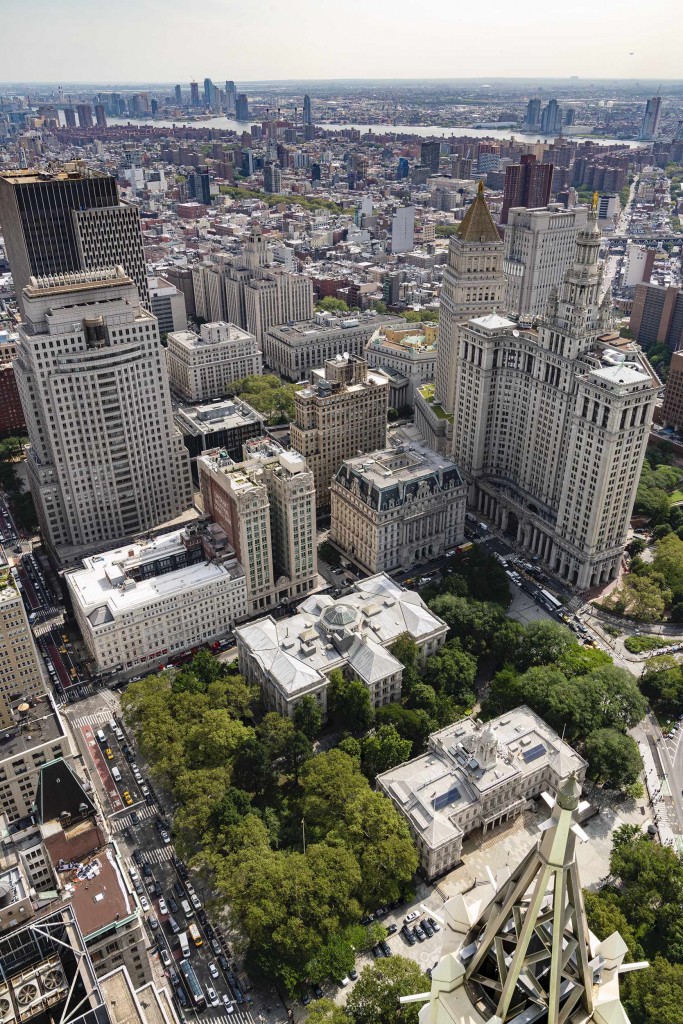 City Hall Park is one of the most historic and beautiful New York City parks, and always decorated with care for the holidays, with flora and fauna in the center of the park. Both 25 Park Row and the Woolworth Tower Residences, which bookend the park, have amazing views over the winter wonderland.