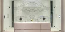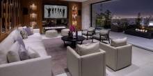 There’s a two-story great room with breathtaking views that are seen through large glass walls. This great room is a centerpiece of the home. Additional views of Downtown Los Angeles and the Pacific Ocean can be appreciated throughout the home, due to the many floor-to-ceiling windows.