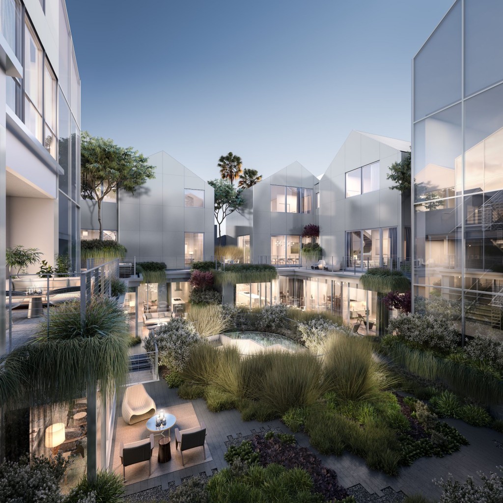 Gardenhouse features a collection of Row Houses, Garden Flats and Sky Villas offering the space and privacy of a signature custom home, airy, contemporary design, and barrierless transitions between indoors and out.