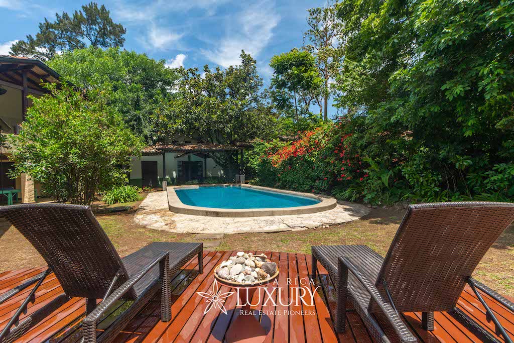 Casa Magnolia is a luxury home offered for sale in Escazu, in an authentic architectural style with a perfect balance between a country home and a city home, designed for entertaining and maximum privacy. The biggest and best surprise of all is the backyard garden. The landscape of Casa Magnolia comes in a poetic shape, with multiple hide away and relaxing places like a hanging bridge, a gazebo under the trees and walking trails inside its lush tropical gardens.