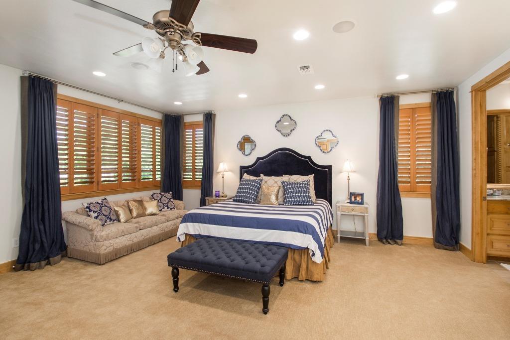 The study has beadboard ceilings and a private balcony. The six bedrooms each have en-suite full baths with granite counters and walk-in closets. The four upstairs bedrooms have private balconies with glass railings designed by Glasshouse for unimpeded views of the lake and nearby woods. All patios and balconies have Turkish travertine tile flooring. The lower level of the estate features a walkout bedroom with easy access to the outdoor kitchen and pool area. The 100-square-foot closet in the en-suite bath doubles as a concrete-reinforced safe room with a built-in 5’ Winchester safe.
