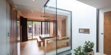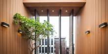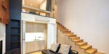 Now a home and office space for a large family and their family-owned jewelry business, the renovated space features a series of separate, two-story living units that act as individual private houses. Each unit is accompanied by its own bedroom, living room, pantry, and floor-to-ceiling windows, as well as other amenities. Towards the back of the building is where an elevator, which allows access to the respective units, is located.