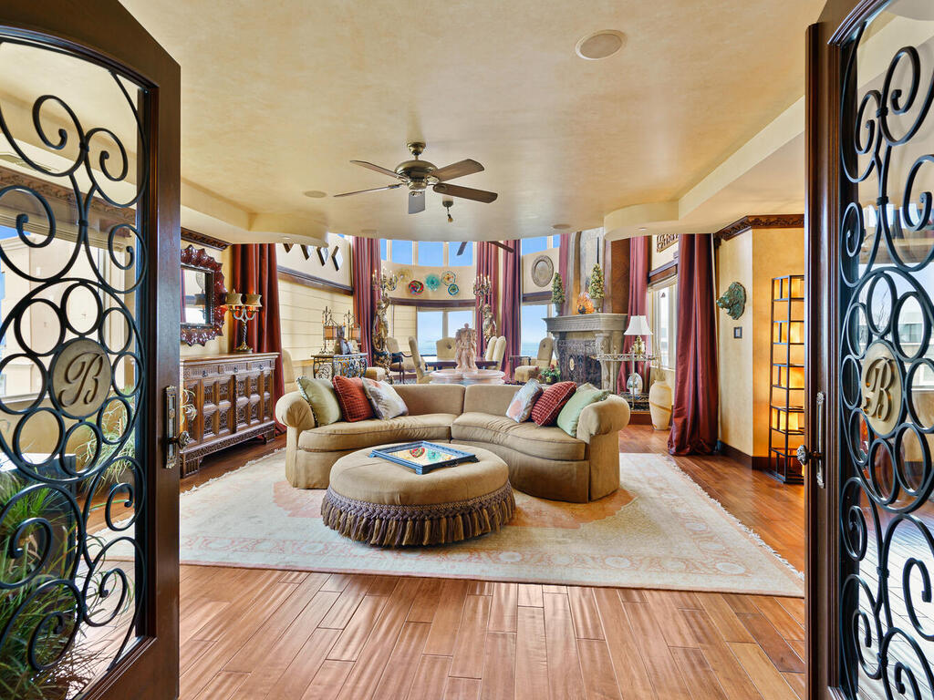 Possibly one of the best locations in downtown Sarasota, Golden Gate Point is home to this amazing three-story penthouse at Vista Bay Point showcasing 360-degree views of Sarasota Bay, The John Ringling Causeway, Bird Key, Longboat Key, downtown Sarasota, Bayfront Park, and Marina Jack’s. Encompassing the top three floors, this one-of-a-kind residence features over 5,400 square feet of interior living space on two levels as well as an expansive private deck including a summer kitchen on the roof. Two-story ceilings, a stunning custom-designed interior staircase, hand-scraped hardwood floors, solid mahogany doors, custom millwork, exotic stone and granite, two fireplaces, two patios with gas grill connections and Crestron automation are just some of the features that make this home special. The stunning kitchen boasts Italian cabinetry, Viking stainless steel professional appliances, including a gas cooktop, beverage drawers and a full-size wine refrigerator. The master suite is an oasis with an amazing custom organized master closet with its own laundry room, a sitting room and dual bathrooms with a shared walk-in shower. This residence comes with two 2-car private garages and 2 large storage rooms. Home to only 16 residences in two luxury towers, Vista Bay Point is a boutique community featuring secured access, private garages, a fully-equipped fitness center, theater room, social room, guest suite, a pool, spa, and a sundeck all within the lushly landscaped grounds. All this in an amazing waterfront location just minutes from downtown Sarasota, St. Armands Circle, and the beaches of Lido and Longboat Key.