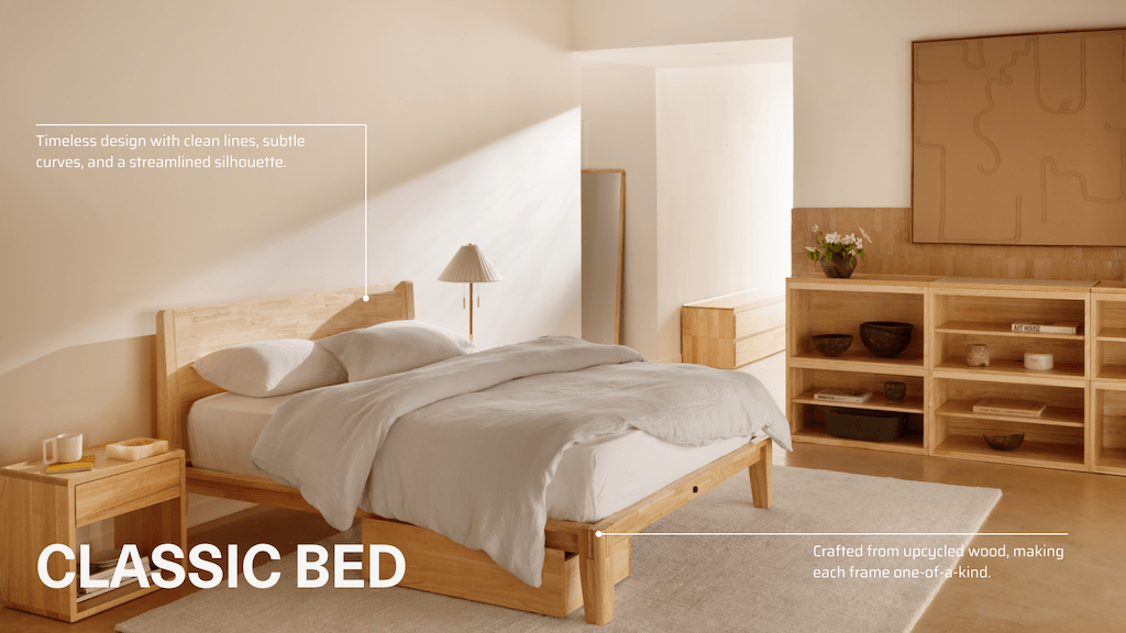Its smooth, curved edges, neat Pillowboard, and extra under-the-bed storage will tick all your boxes! Each bed frame is one-of-a-kind as it showcases the natural grains and knots of handcrafted, repurposed wood. The Classic Bed By Thuma is classic, simple, and noise-free.