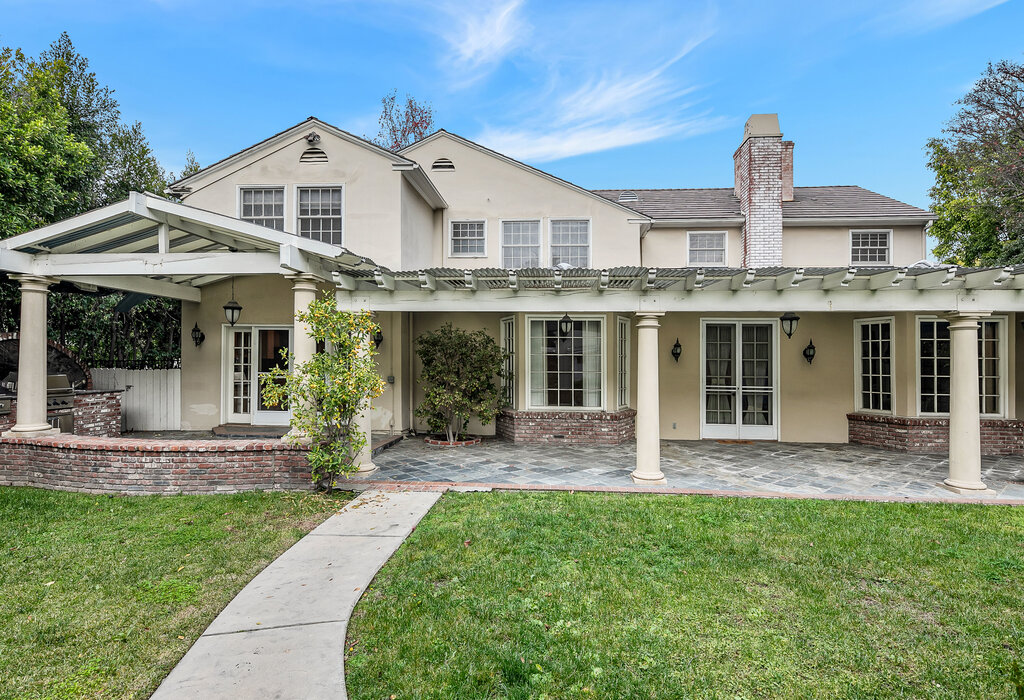 Colonial elegance in the heart of San Marino. This timeless estate rests on a rare, quarter-acre corner lot in one of San Marino’s most prestigious neighborhoods. Built in 1936, the two-story home has been thoughtfully maintained and updated to offer contemporary amenities while preserving its architectural character. Graceful, wrought-iron stairs greet you in the foyer, joined on either side by a generous, fireplace-equipped living room and the formal dining room, each brightly lit by bay windows. Quality craftsmanship is displayed throughout, with rich hardwood floors in every room, and a second fireplace living area complete with coffered ceilings, a wood-paneled hearth, wet bar, and views of the manicured back gardens. The kitchen is reimagined to offer the finest modern amenities, featuring a large center island with bar seating, top-of-the-line appliances, and French doors pouring with light which open to your outdoor entertaining space. Enjoy drinks in the shade and dinner under the stars on your spacious hardscape patio and built-in grill station, embraced by tall hedges and mature trees for exceptional privacy. The two-car detached garage is conveniently accessed from a gated side entry with extra driveway parking. After a day of entertaining, retreat upstairs to your oversized primary suite with extensive closet storage including a huge walk-in with organizers, plus ample sitting room and a beautifully tiled primary bath with a soaking tub and frameless shower. Two additional bedrooms host their own en-suite baths, and a third fireplace is located in the downstairs bedroom. All within moments top-ranked schools, the Huntington Library and Gardens, Old Town Pasadena, and a bounty of nearby shopping, dining, and historic landmarks. A rare opportunity in one of LA’s best neighborhoods.