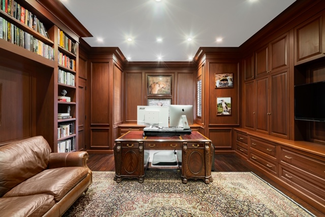 Magnificent Hamptons-style family home with French Caribbean Influence. Timeless design by world-renowned Jorge L. Hernandez Architect. No expense spared! 5 bedrooms, media room, upstairs den, custom-designed office and fully equipped gym on sprawling 20,951 sf. lot with 90 ft. of prime waterfront. Spacious floorplan with 7,058 sf. of a living area (as per plans) approx. 7,704 adjusted sf. oversize gourmet kitchen with top-of-the-line appliances and high-end craftsmanship by Hector & Hector. Spectacular Master suite and bath with large walk-in closet and private terrace. Marble and mahogany floors throughout. Fabulous covered terrace with Summer kitchen surrounded by lushly landscaped grounds, garden pool & beautiful Intracoastal views. Great location that is steps away from the tennis court, tot lot and basketball court.