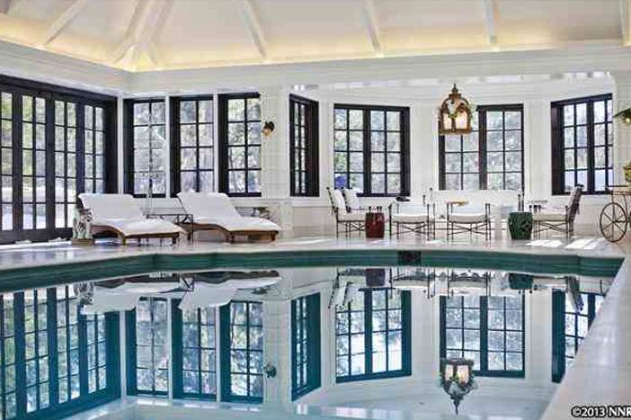The Tahoe abode also offers an indoor mosaic pool, retractable skylight, massive indoor movie theater, 3,000+ bottle wine cellar, stable area and a two-story great room for entertaining.