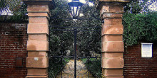 Today, this elegant 17,142 square foot Federal-style home consists of nine bedrooms, thirteen bathrooms, a drawing room, ballroom, library, formal rooms, wine cellar, staff quarters, commercial kitchen, fitness room and a gift wrapping room. The Carriage House has a guest apartment, another separate apartment, staff break room, powder room and small kitchen. Buildings are surrounded by classic and romantic Charleston-style walled gardens, patios and walks. Charleston’s landmark Sword Gate house is now for sale, priced at $18.8 million.